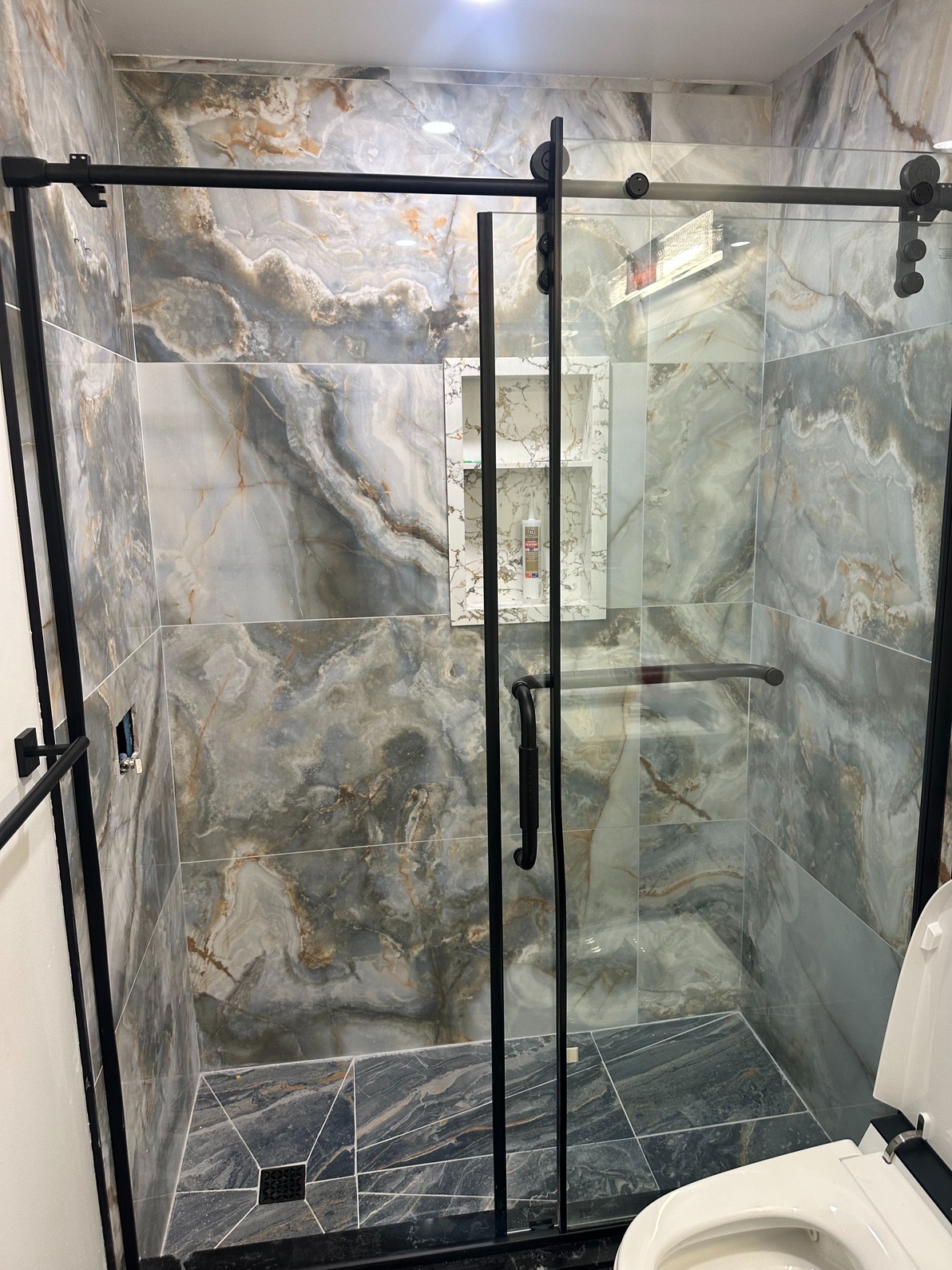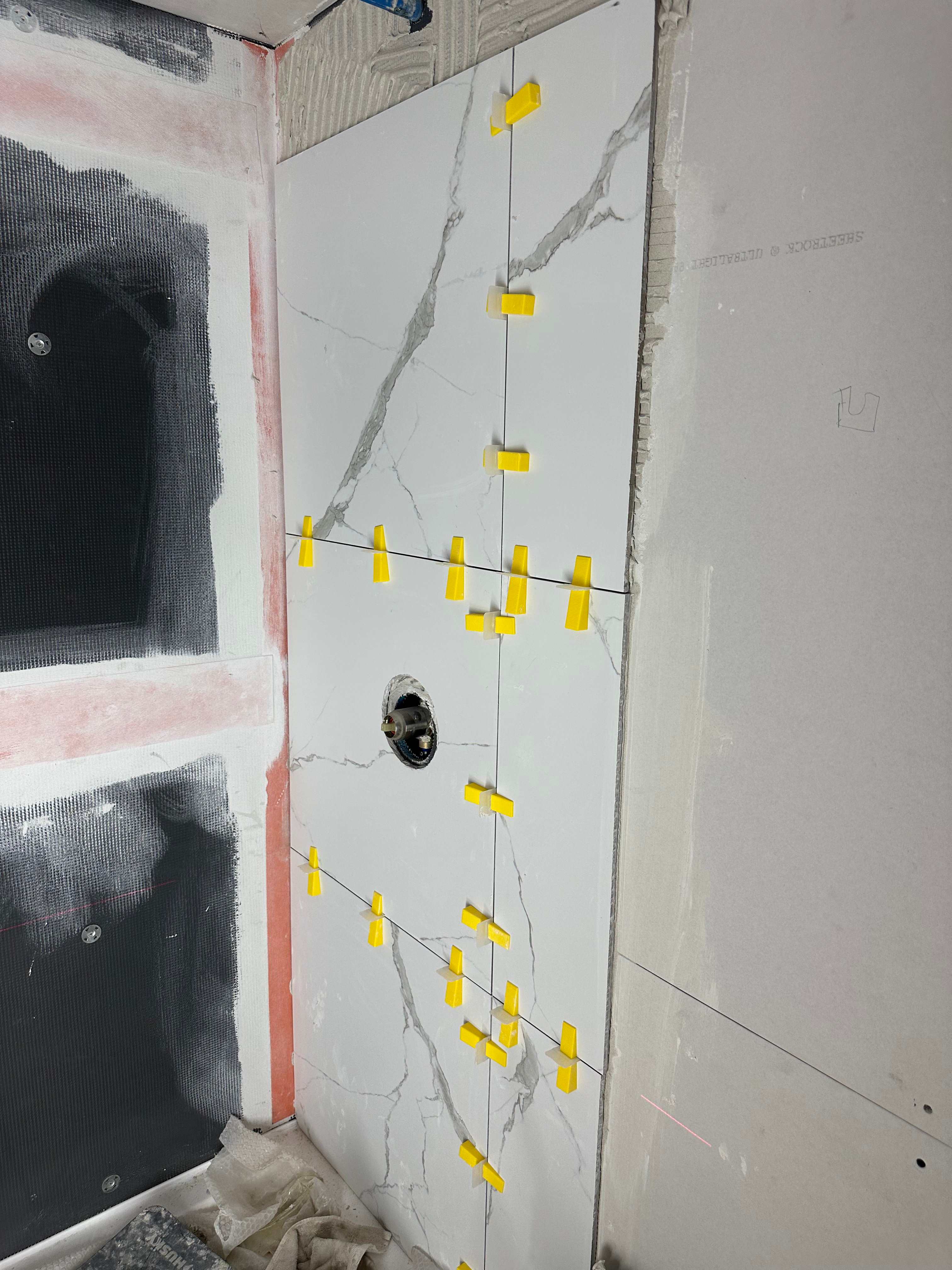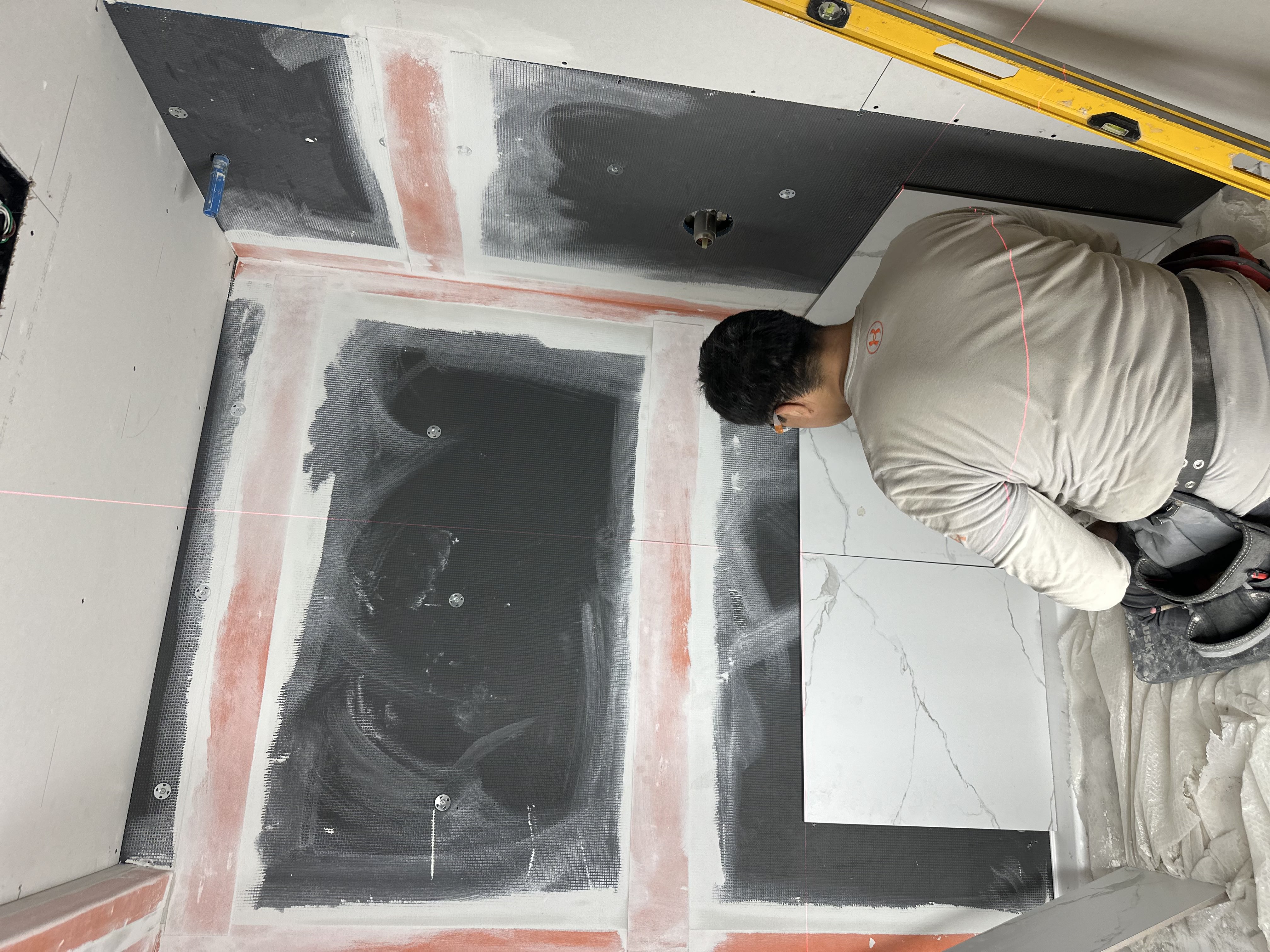 Professional installation of porcelain and ceramic tiles for washrooms, showers, feature walls, and flooring using precision leveling systems