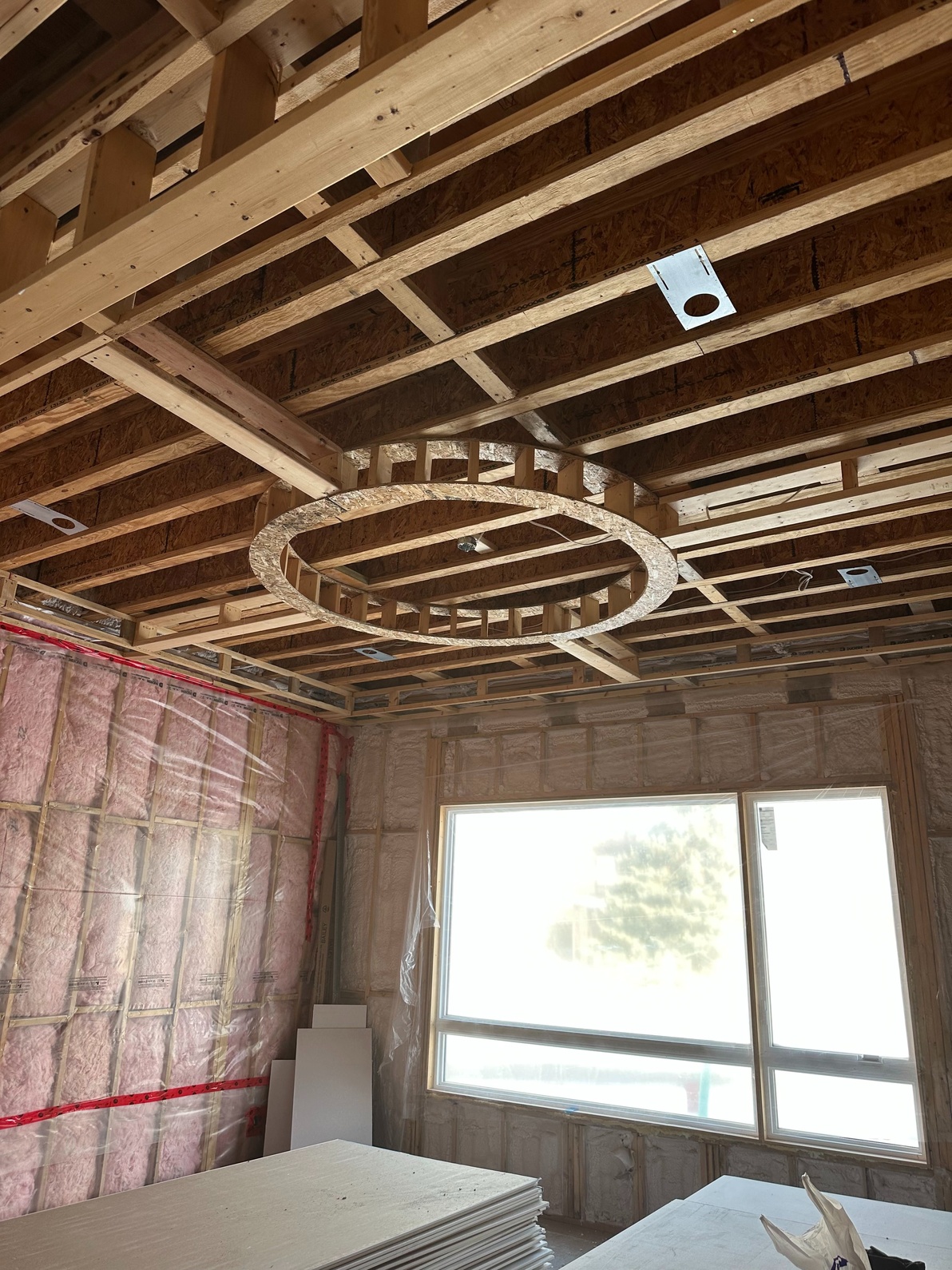 Interior framing for basements, partitions, and structural layouts, including custom ceiling features and framing for renovations and new builds.